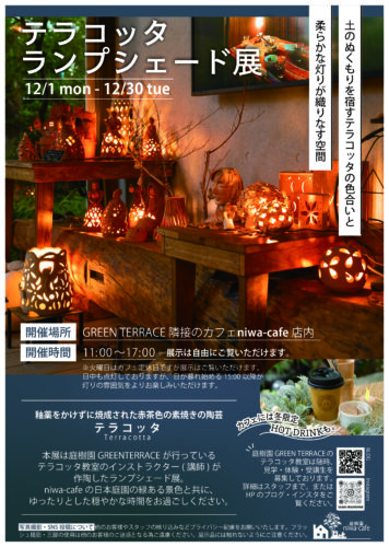 12月1日(月)〜30日(火)はテラコッタランプシェード展を開催します。 ■開催場所:園芸店GREEN TER…